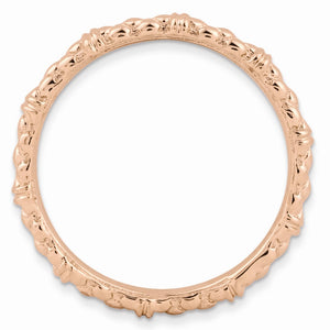 Make it simple and stylish with bands of different textures, finishes, widths and colors! This 14k rose gold plated sterling silver band features a patterned design with a high polished finish that measures 2.5mm wide. Guaranteed to fit together perfectly with all of the mix and match Stackable Expressions rings.