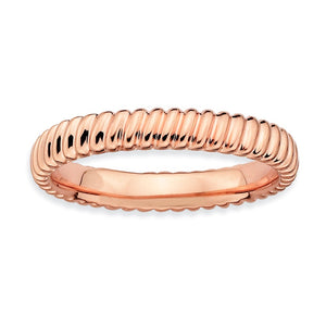 Make it simple and stylish with bands of different textures, finishes, widths and colors! This 14k rose gold plated sterling silver band features a fluted design with a high polished finish that measures 3.5mm wide. Guaranteed to fit together perfectly with all of the mix and match Stackable Expressions rings.