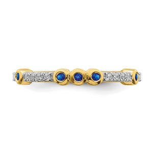 2mm 14k Yellow Gold Created Sapphire & .08 Ctw Diamond Stackable Band