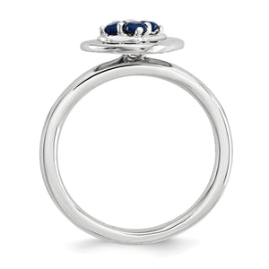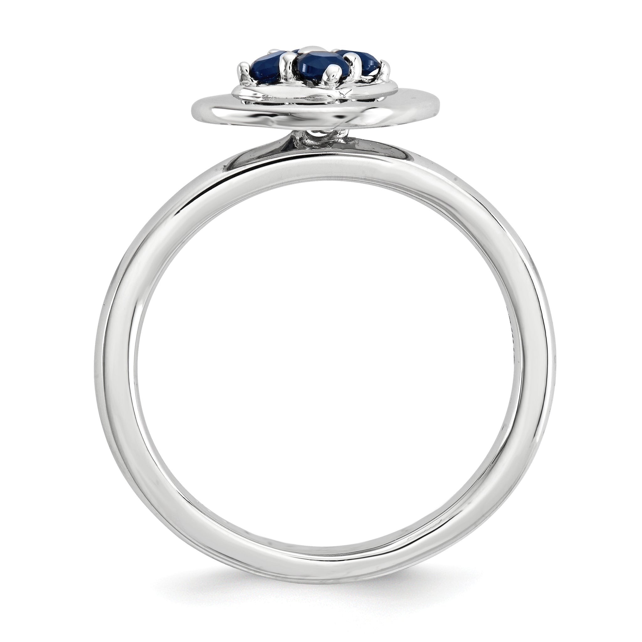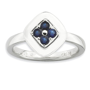 Created Sapphire, September's birthstone symbolizes truth, faithfulness and honesty bringing calmness and peace. This 2.5mm smooth polished band features 4 round created sapphires prong set in rhodium plated sterling silver. Guaranteed to fit together perfectly with all of the mix and match Stackable Expressions rings.