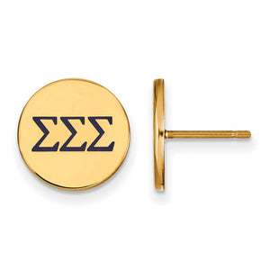 Show your Greek life spirit with these Sigma Sigma Sigma Sorority earrings. They are crafted from yellow gold plated silver and are 12 mm in length and 12 mm in width. We are a certified Collegiate jewelry retailer and this authentic item is licensed by the Sigma Sigma Sigma Sorority and Greek Life. These enameled post earrings are made the USA. This item is not currently in-stock. Once you place your order, please allow us 5 to 7 business days to make it for you.