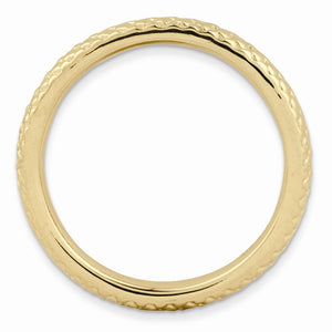 Make it simple and stylish with bands of different textures, finishes, widths and colors! This 14k yellow gold plated sterling silver band features a cable design with a high polished finish that measures 2.5mm wide. Guaranteed to fit together perfectly with all of the mix and match Stackable Expressions rings. This item is backordered. Please allow 7-10 business days for delivery