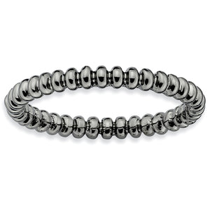 • Make it simple and stylish with bands of different textures, finishes, widths and colors! This black ruthenium-plated sterling silver band features a beaded design with a high polished finish that measures 2.5mm wide. Guaranteed to fit together perfectly with all of the mix and match Stackable Expressions rings. This item is backordered. Please allow 7-10 business days for delivery