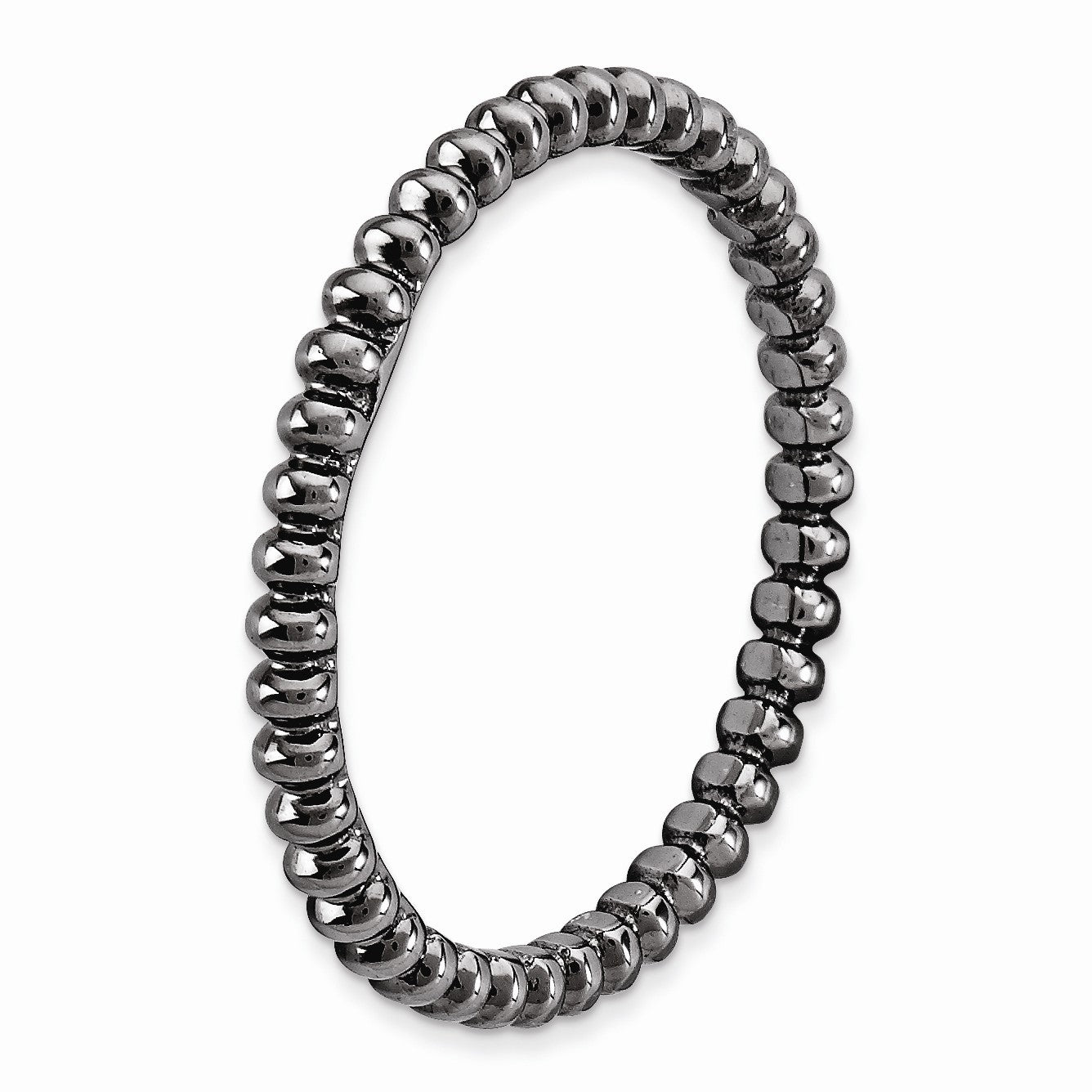 Make it simple and stylish with bands of different textures, finishes, widths and colors! This black ruthenium-plated sterling silver band features a beaded design with a high polished finish that measures 2.5mm wide. Guaranteed to fit together perfectly with all of the mix and match Stackable Expressions rings. This item is backordered. Please allow 7-10 business days for delivery