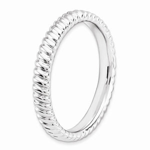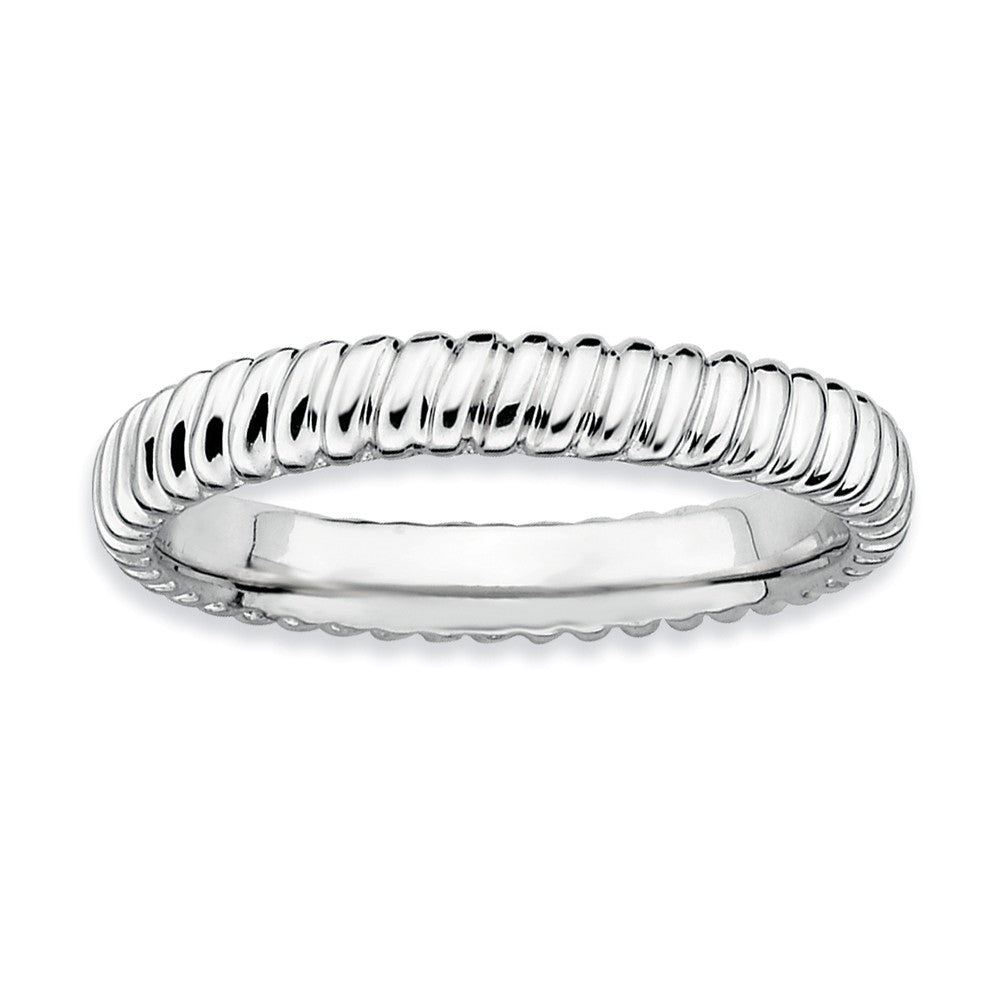 Make it simple and stylish with bands of different textures, finishes, widths and colors! This rhodium plated sterling silver band features a fluted design with a high polished finish that measures 3.5mm wide. Guaranteed to fit together perfectly with all of the mix and match Stackable Expressions rings. This item is backordered. Please allow 7-10 business days for delivery