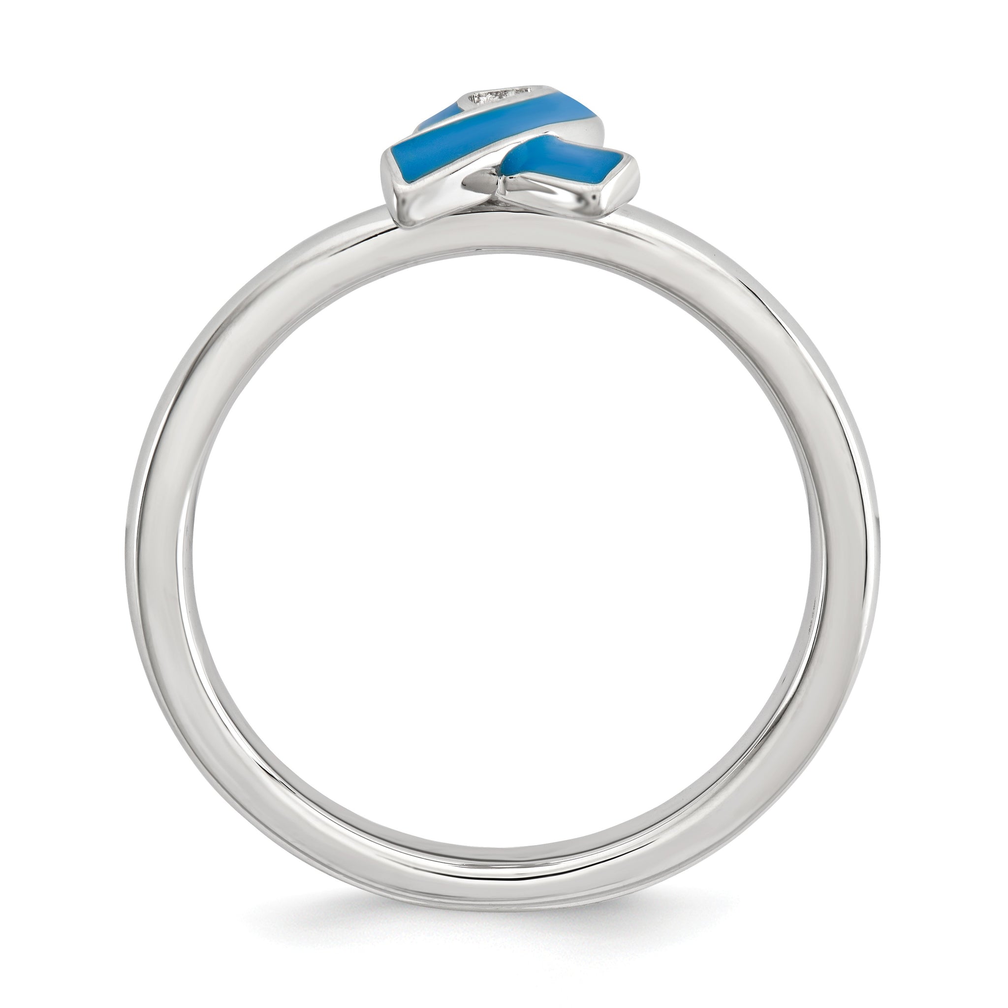 A blue ribbon is used for numerous causes with the most notable being child abuse, drunk driving and prostate cancer. This 11mm blue enamel ribbon sits atop a 2.5mm band fashioned from rhodium plated sterling silver and is guaranteed to fit together perfectly with all of the mix and match Stackable Expressions rings. Each color ribbon may represent more causes than identified and some causes may also be identified by more than one color.