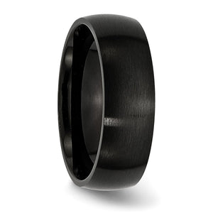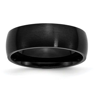 A traditional band set in black-plated 316L stainless steel featuring a classic dome style with a brushed finish and a standard fit shank. This unisex ring is approximately 7mm in width and is suitable for engraving.