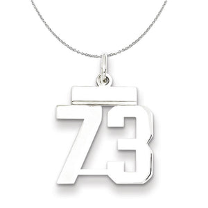 Celebrate your favorite sports player, lucky number or milestone date in your life with a prominent rhodium-plated sterling silver charm. Each polished number is approximately 16mm (5/8 inch) in length, which is finished with a 2mm top bar and a classic jump ring that will accommodate up to a 3mm chain. Includes a 1.25mm, 16 inch sterling silver cable chain.