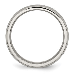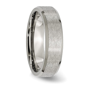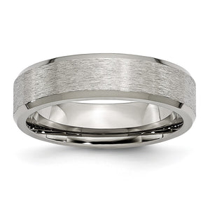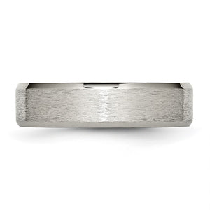 Titanium's beautiful lustrous color combined with its versatile properties makes it a superb choice for those who want a ring that will endure the test of time. This 6mm width, standard fit band features a flat grain-brushed center with polished beveled edges. Suitable for engraving.