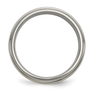 Mens 8mm Titanium & 14k Gold Inlay Domed Ridged Edge Standard Fit Band