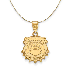 • If you are a fan of The University of Georgia and the Bulldogs then you need to show your school spirit with this University of Georgia pendant. We are a certified college jewelry retailer and this authentic item is officially licensed. It is crafted from 14k Yellow Gold and crafted by LogoArt in the USA. Includes a 24 inch, 0.8mm 14k yellow gold cable chain with a lobster clasp.