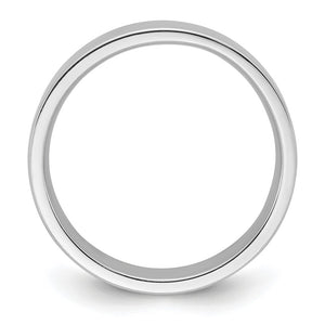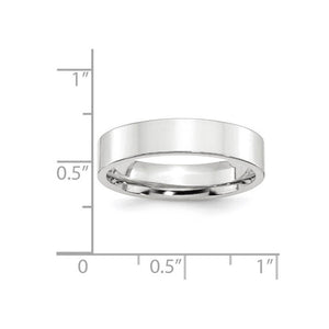 A sleek contemporary style band created in rhodium-plated 14k white gold with a polished finish. This unisex band features a flat profile, a comfort fit shank, is approximately 1.8mm in thickness (standard weight), and 5mm in width. Suitable for engraving. Made in the U.S.A.