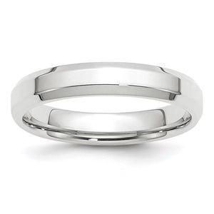 A tried-and-true favorite style featuring a polished beveled edge design created from rhodium-plated 10k white gold. This unisex band has a comfort fit shank, is approximately 1.8mm in thickness (standard weight) and 4mm in width. Suitable for engraving.�