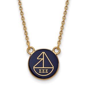 14K Plated Silver Sigma Sigma Sigma Small Enamel Logo Necklace