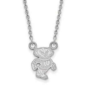 14k White Gold U of Wisconsin Small Logo Pendant Necklace