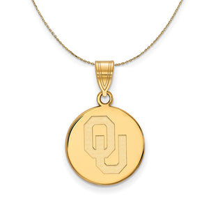 If you are a fan of The University of Oklahoma and the Sooners then you need to show your school spirit with this University of Oklahoma pendant. We are a certified college jewelry retailer and this authentic item is officially licensed. It is crafted from 14k Yellow Gold and crafted by LogoArt in the USA. Includes a 20 inch, 0.8mm 14k yellow gold cable chain with a lobster clasp.