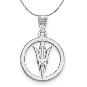 If you are a fan of Arizona State University and the Sun Devils then you need to show your school spirit with this Arizona State University necklace. We are a certified college jewelry retailer and this authentic item is officially licensed. It is crafted from Sterling Silver and crafted by LogoArt in the USA. Includes a 20 Inch, 1.25mm sterling silver franco chain.