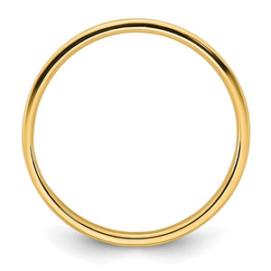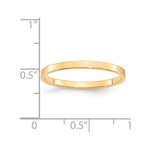 A sleek contemporary style band created in polished 14k yellow gold. This solid band features a flat profile, a standard fit shank, is approximately 1.2mmin thickness (lightweight), and 2mm in width. Made in the U.S.A.