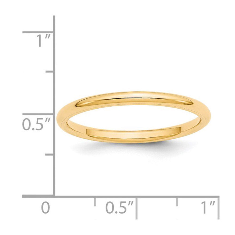 • A traditional band created from 14k yellow gold featuring a classic dome design with a polished finish and a comfort fit shank. It is approximately 1.95mm in thickness (standard weight) and 2mm in width.