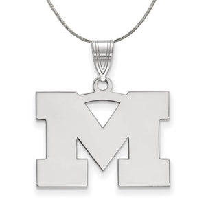 Sterling Silver U. of Michigan Medium Initial M Necklace