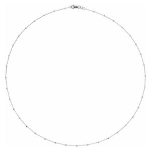 Cover all your bases with this fancy rhodium-plated 14k white gold necklace that features a delicate 0.85mm classic cable chain enhanced with 1.7mm faceted beads. It closes with a lobster claw clasp and is 16 inches in length.