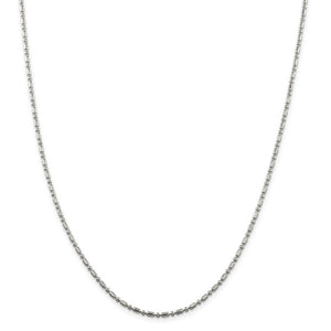 • Round and oval polished beads gleam along the length of this sterling silver chain necklace that measures 2mm in width by 18 inches in length. It features a lightweight hollow link design and closes with a spring ring clasp. This item is backordered and we estimate it to ship in approx. 10-12 days. Please email service@theblackbow.com for more details.