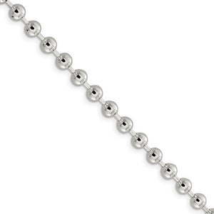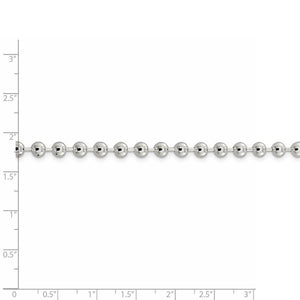 Small round balls gleam along the length of this polished sterling silver chain that measures approximately 5mm in width by 22-inches in length. It features a solid link design and closes with a reliable lobster claw clasp. Made in Italy.