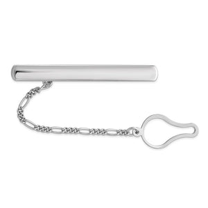 Complete your professional appearance or put the finishing touch on your big day with this rhodium-plated sterling silver tie bar. It features a classic polished design with a button chain. The slide tie bar is approximately 5.5mm (1/4 inch) in width by 50mm (1 7/8 inch) in length. The figaro chain is about 2.3mm in width. Suitable for engraving. Made in Italy.