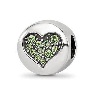 Sterling Silver with Crystals August Heart Strength Bead Charm