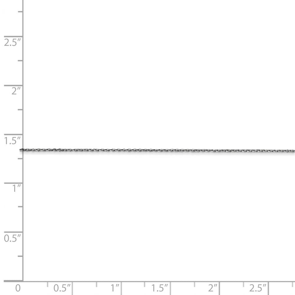 Round open links of rhodium-plated 14k white gold interlock to form a delicate cable chain that sparkles and shines in the light thanks to the diamond-cut finish. The solid link construction of this 0.65mm necklace is ideal for lightweight pendants and the lobster-claw clasp will keep it securely fastened. 18 inches in length.
