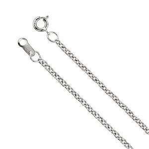 A traditional alternating pattern of solid open links connect together to create a classic cable chain made of polished sterling silver. This pendant chain necklace is 1.5mm in width, 18 inches in length and closes with a spring ring clasp.