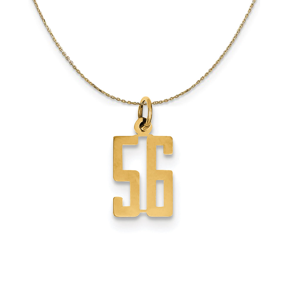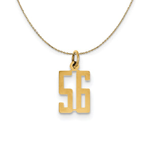 14k Yellow Gold, Alumni Small Elongated Number 56 Necklace