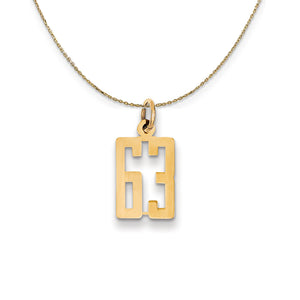 14k Yellow Gold, Alumni Small Elongated Number 63 Necklace