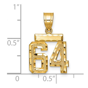 Celebrate your favorite sports player, lucky number or milestone date in your life with a prominent 14k yellow gold charm. Each satin and diamond cut number is approximately 12mm (7/16 Inch) in length, which is finished with a 3mm top bar and tapered bail giving it an overall length of approximately 26mm (1 Inch). Made in the U.S.A. Chain not included. This is a made to order item and is estimated to ship in about 10 days. Please email service@theblackbow.com for more details.