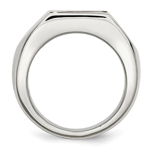 Traditional signet rings are stylish and timeless! This mens stainless-steel and 14k yellow gold accent ring features a brushed and polished finish, a flat top with a diagonal strip design and a tapered fit. It is approximately 11mm in width across the top.