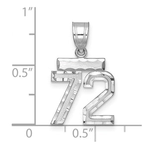 Celebrate your favorite sports player, lucky number or milestone date in your life with a prominent rhodium-plated sterling silver charm. Each satin and diamond cut number is approximately 12mm (7/16 Inch) in length, which is finished with a 3mm top bar and classic jump ring that will accommodate up to a 3mm chain. Made in the U.S.A. Chain not included.