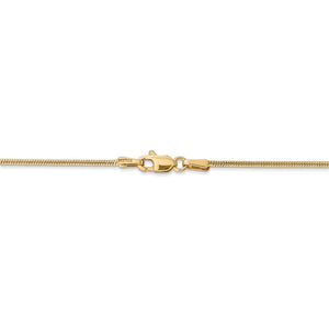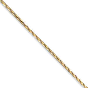 A smooth and flexible snake chain with its classic round design will show off your favorite pendant or charm to perfection. Fashioned from polished 14k yellow gold, this solid link necklace chain measures 1.4mm in width by 18-inches in length and is finished with a lobster-claw closure to ensure a safe fit.