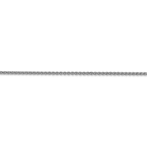 Interwoven figure eight links of polished rhodium-plated 14k white gold form a distinctive, braided design that will add elegance and beauty to your ensemble. This 1.65mm wide, solid spiga chain closes securely with a durable lobster clasp. 9 inches in length.