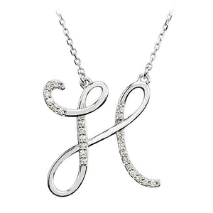1/8 Ctw Diamond 14k White Gold Medium Script Initial H Necklace, 17in - Black Bow Jewelry Company