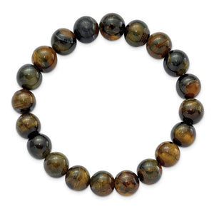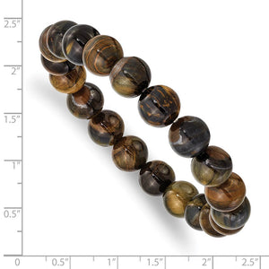 • Natural stones with their unique characteristics offer exotic appeal while adding a touch of nature to your ensemble. This beaded stretch bracelet is fashioned from genuine blue and yellow tiger eye agate and is approximately 10mm (3/8 inch) in width. The stretch design allows it to fit most wrists and the unstretched length may vary slightly between 6.5 and 6.75 inches. The color range varies on all natural stones so please allow for slight variations in the shades and size. The color on your screen may also not reflect actual gemstone color due to variations in monitors and browsers.