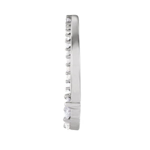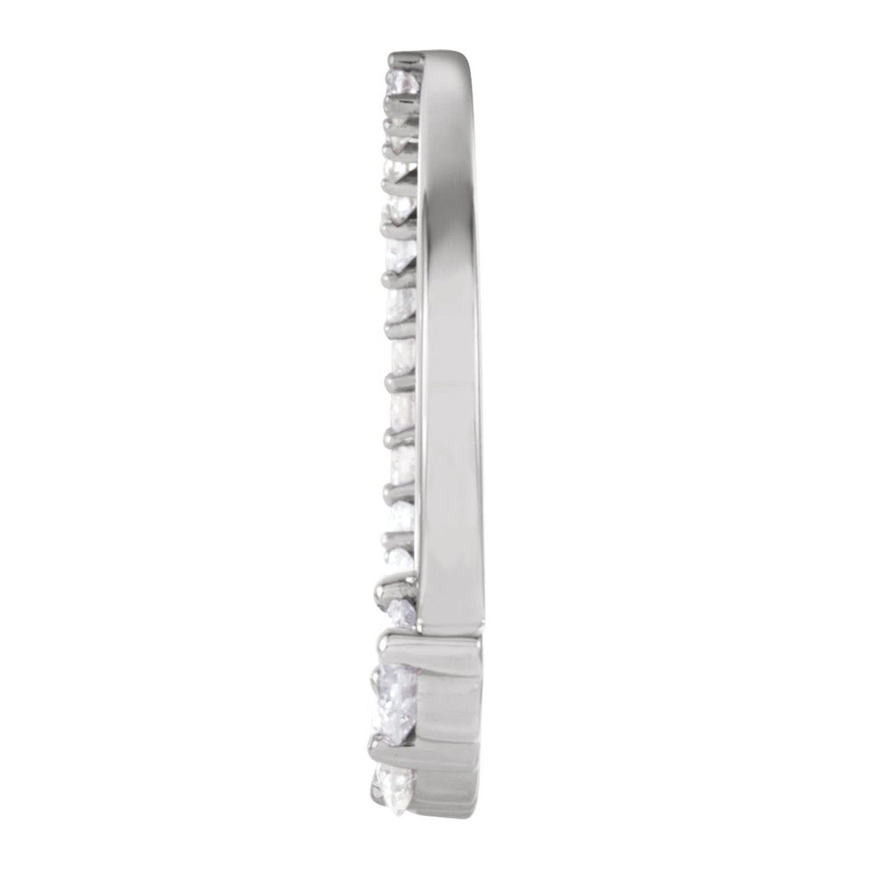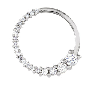 Journey diamond jewelry has special meaning - with every step, love grows. Specially designed with each diamond growing larger to signify your love growing and blossoming with time. Celebrate the journey with our graduated 20-stone diamond circle pendant created in rhodium-plated 14k white gold featuring a no bail design that can be hung from a cord or chain or your choice using a cow-hitch assembly. The natural diamonds are I1 in clarity and G-H in color and the total diamond weight is 1/5 of a carat. It is approximately 15mm or 9/16 inch in size. Chain not included. This is a made to order item and is estimated to ship in about 6-8 days. Please email service@theblackbow.com for more details.