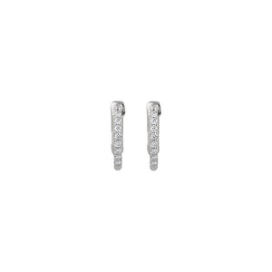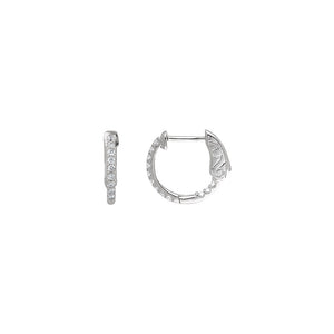 Shimmering with natural white diamonds inside and out this classic round hinged hoop will put a little bling in your style. Each 14k white gold earring is prong set with twelve, I1 clarity, H-I color diamonds and the total diamond weight for the pair is 1/4 carat. They are approximately 1.5mm thick by 14mm (9/16 inch) in length.
