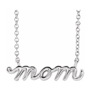 14K White Gold Petite Mom Script Necklace, 16 Inch or 18 Inch