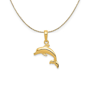 14k Yellow Gold 17mm Swimming Dolphin Necklace - Black Bow Jewelry Company
