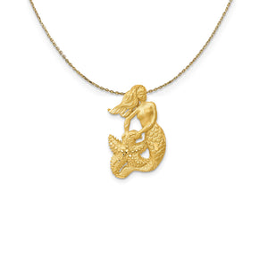 14k Yellow Gold Diamond Cut Mermaid with Sea Star Necklace