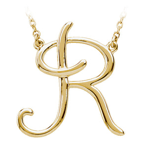 14k Yellow Gold, Olivia Collection, Medium Script Initial R Necklace