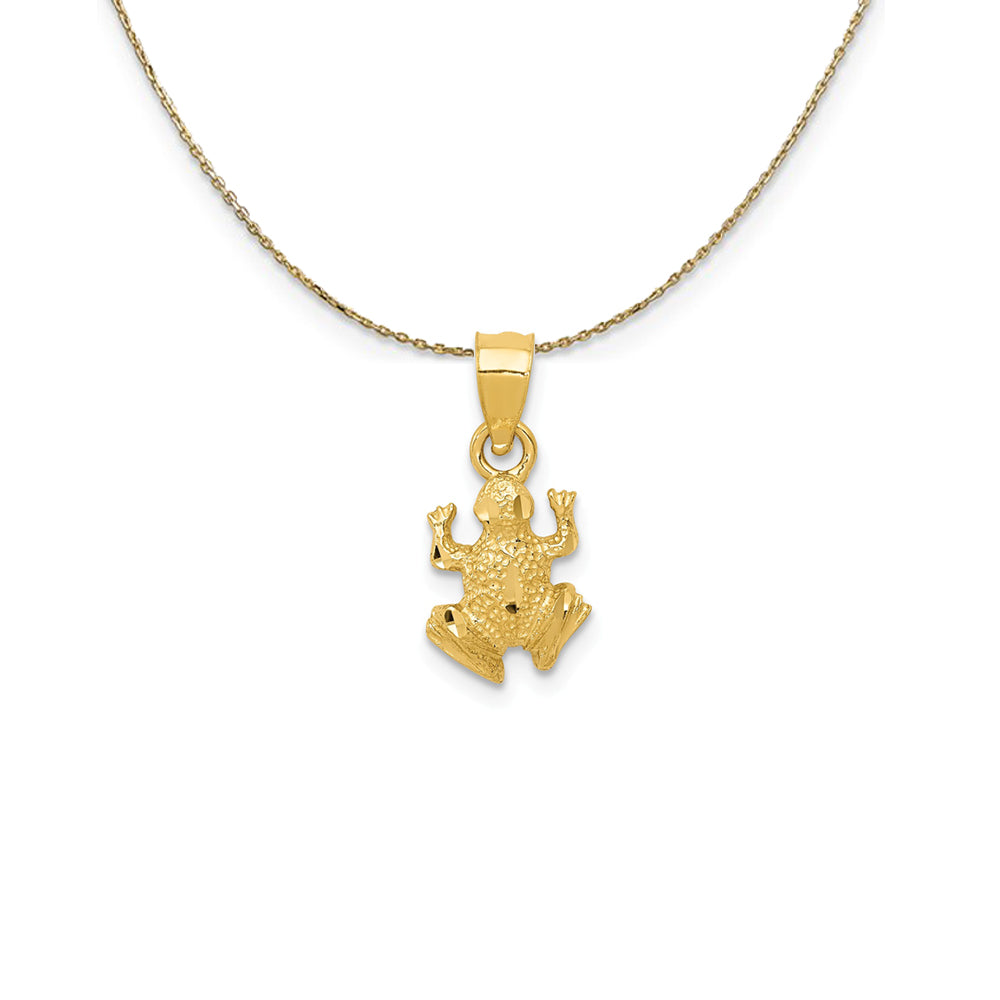 14k Yellow Gold Tiny Diamond-Cut Frog (7mm) Necklace