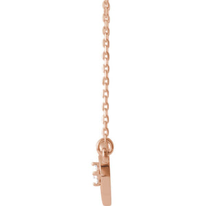 A simplistic yet elegant necklace design with a traditional or trendy style will give you a tailored look that goes from daytime wear to a night out on the town with ease. This small infinity heart necklace created from 14k rose gold features a 3mm (1/10 carat) genuine diamond that is i1 in clarity and G-H in color. The approximate pendant size is 18mm (11/16 inch) in width by 10mm (3/8 inch) in length. The diamond-cut cable chain closes with a spring ring clasp, is 1mm in width and adjusts 16 to 18 inch in length. This is a made to order item and is estimated to ship in about 6-8 days. Please email service@theblackbow.com for more details.