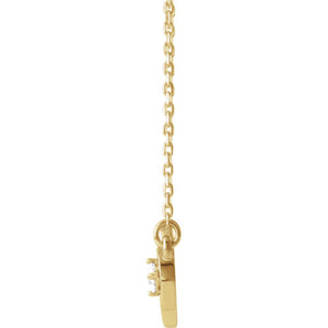 A simplistic yet elegant necklace design with a traditional or trendy style will give you a tailored look that goes from daytime wear to a night out on the town with ease. This small infinity heart necklace created from 14k yellow gold features a 3mm (1/10 carat) genuine diamond that is i1 in clarity and G-H in color. The approximate pendant size is 18mm (11/16 inch) in width by 10mm (3/8 inch) in length. The diamond-cut cable chain closes with a spring ring clasp, is 1mm in width and adjusts 16 to 18 inch in length.