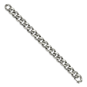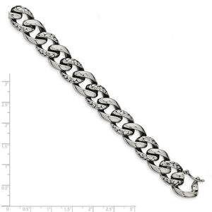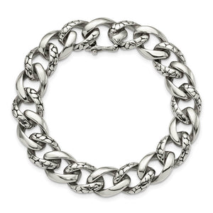 14mm Stainless Steel Textured & Polished Curb Chain Bracelet, 8.5 Inch